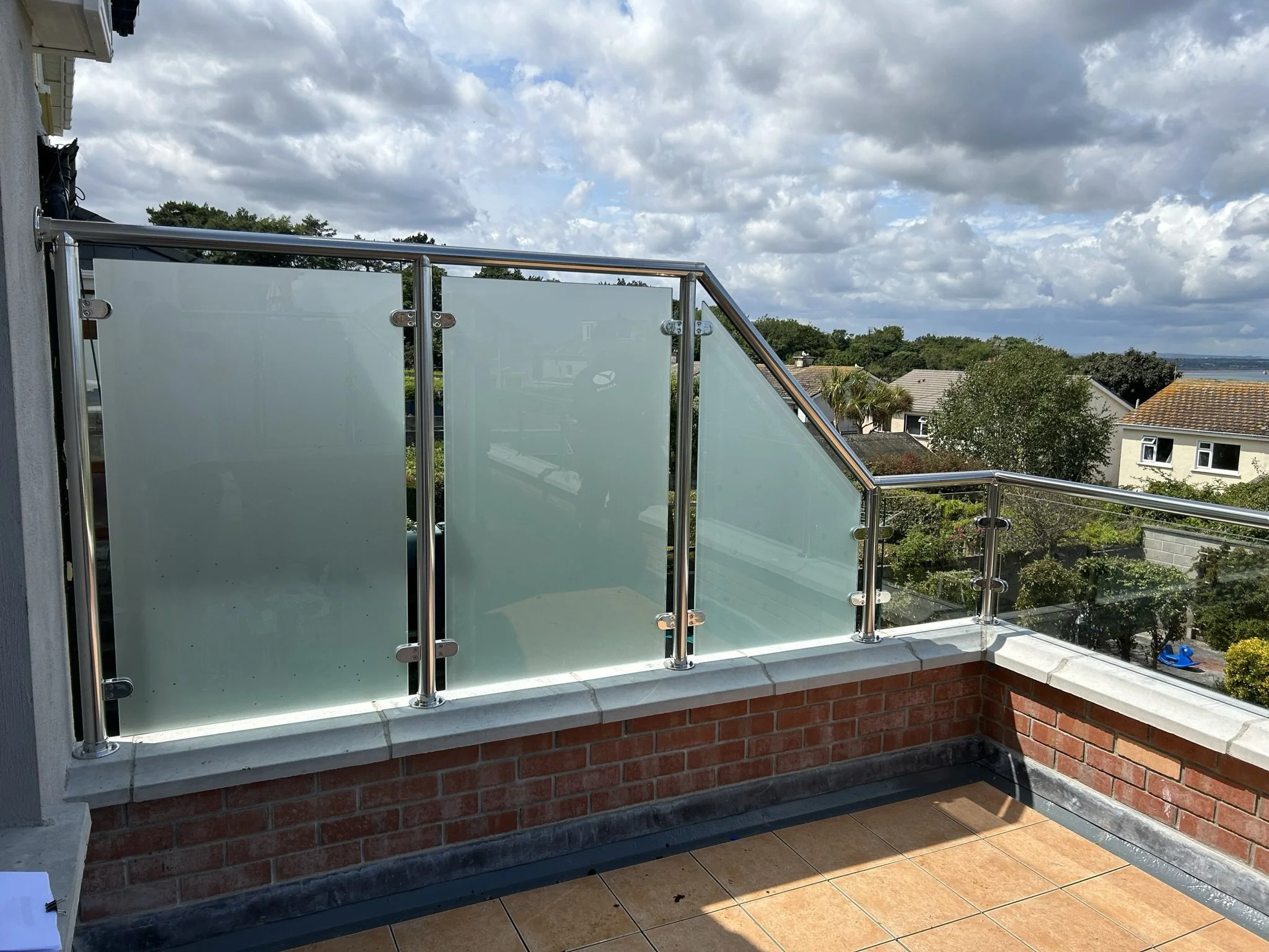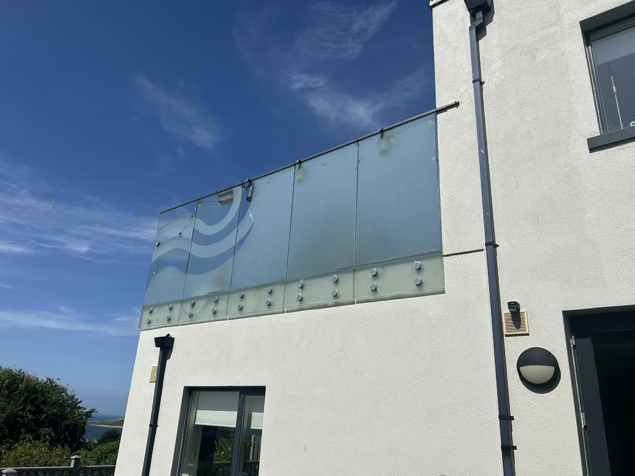 ‘Carrickbrack’ Balcony Balustrade. Stainless Steel & Opaque Glass Balustrade to Balcony.