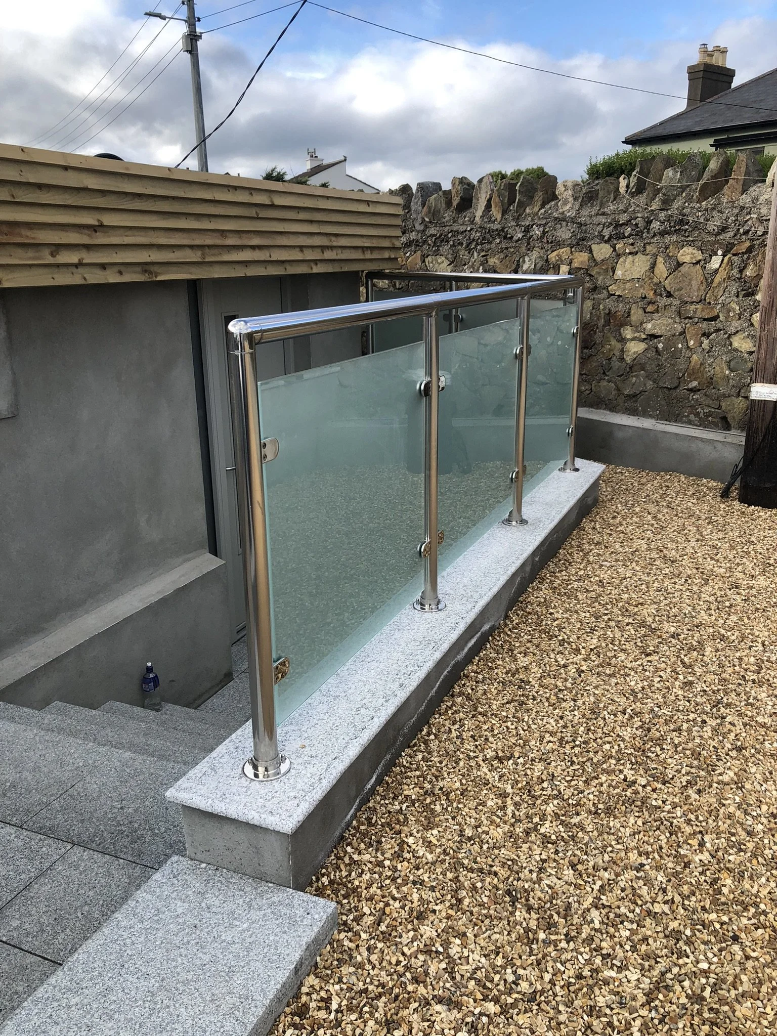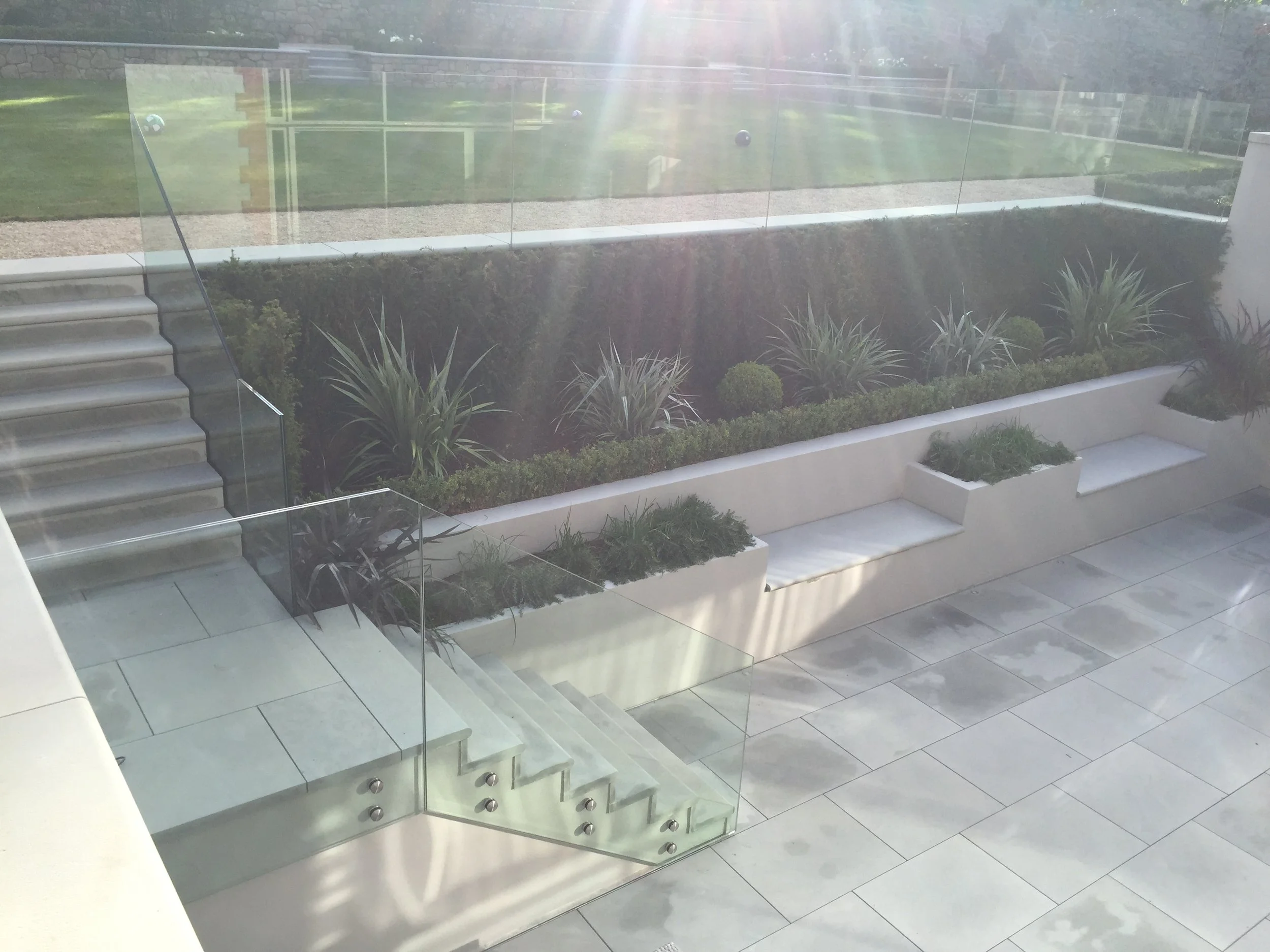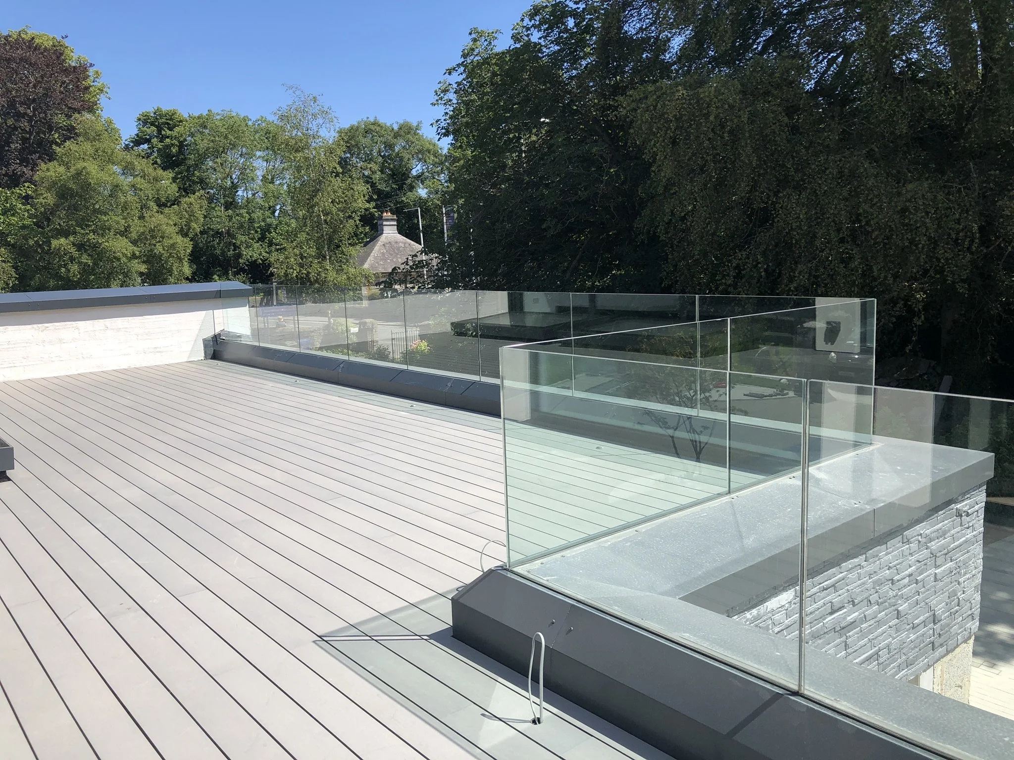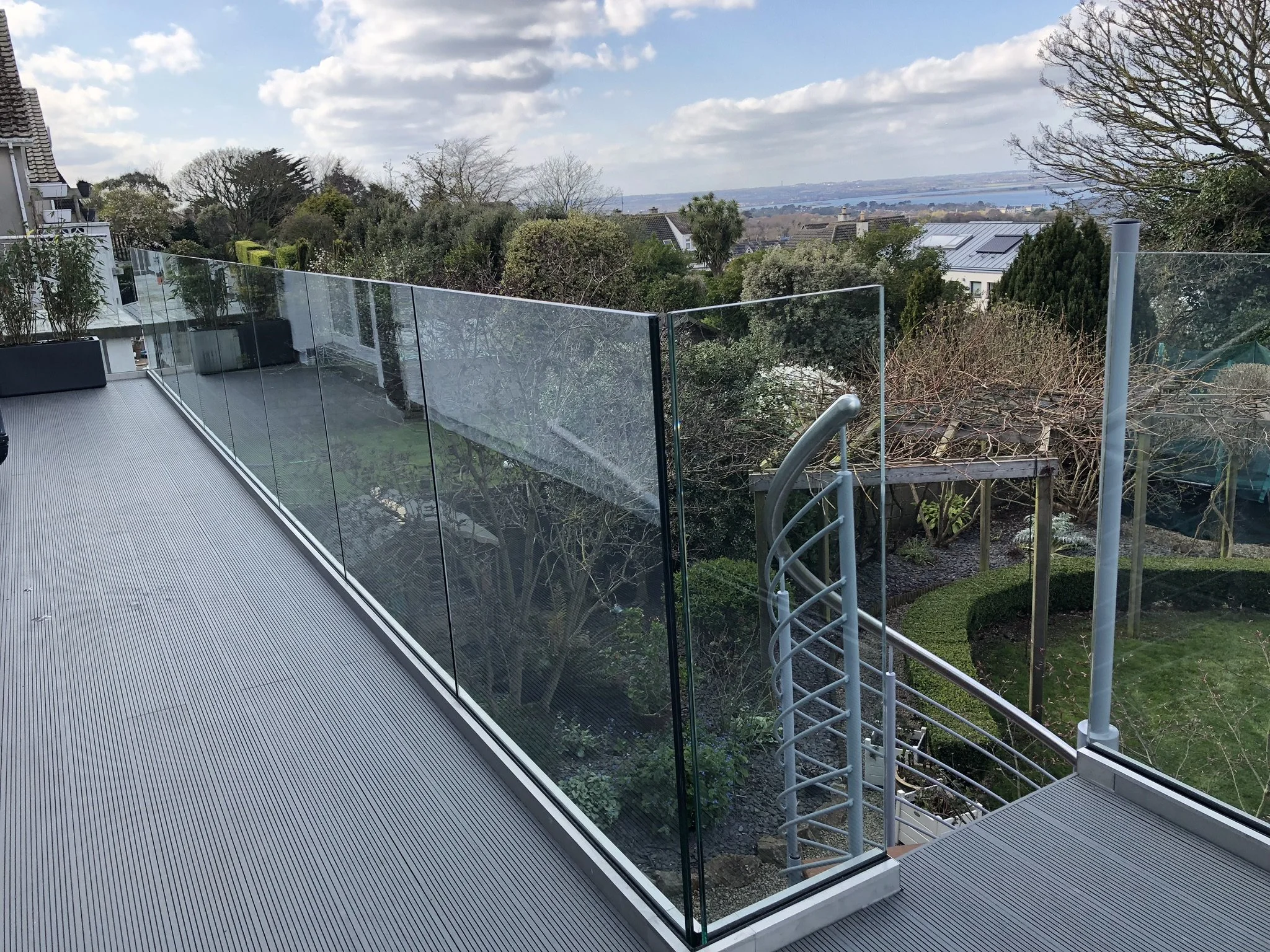Glass Terrace Balustrade - Malahide Frameless, Toughened Glass Balustrade, set in Metal Channel.