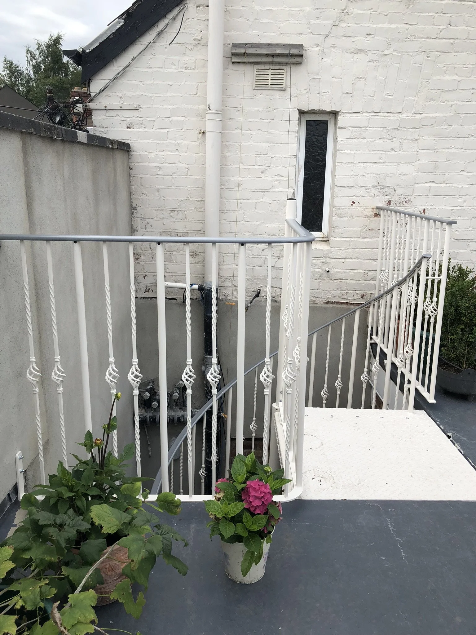 Dual Traditional Guarding - Botanic Galvanised and sprayed, Cream, 'Dual Traditional' style Guarding to Stairs.