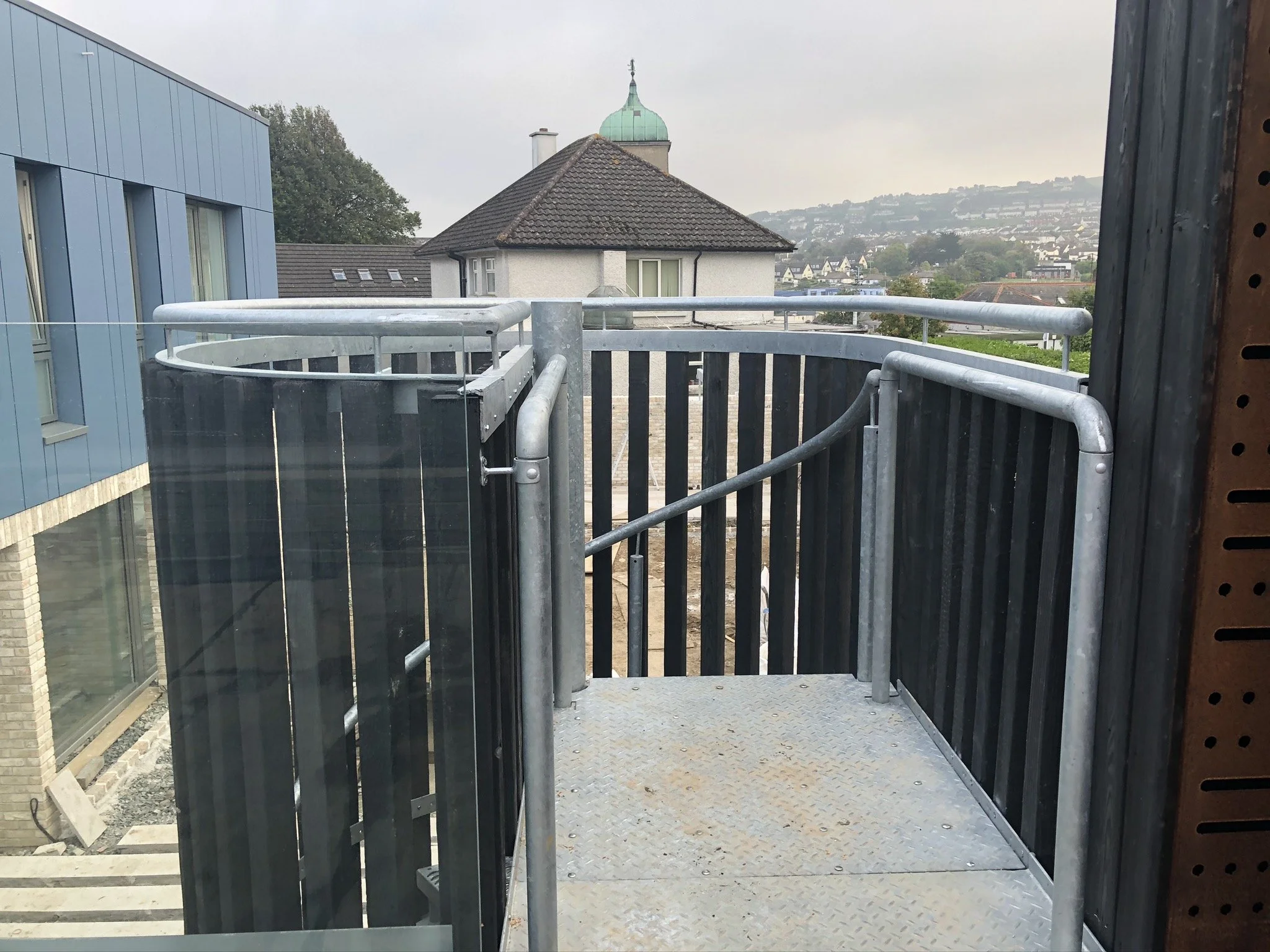 Galvanised Handrails - Wicklow Handrails connected to Treated Timber Stud Cladding.