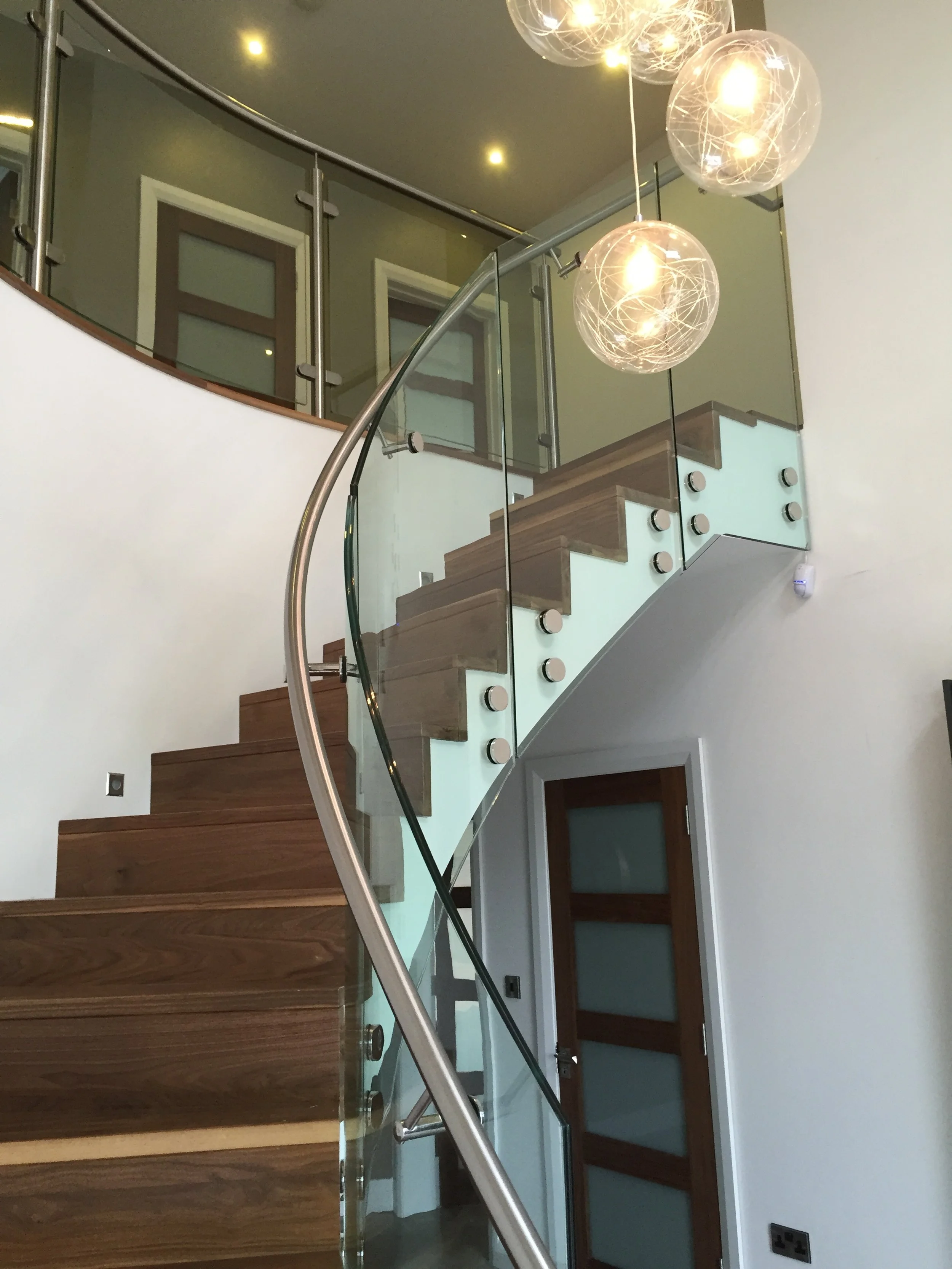 Duleek Frameless Glass Curved Frameless Glass Balustrade, with Stainless Steel Handrail and Connectors.