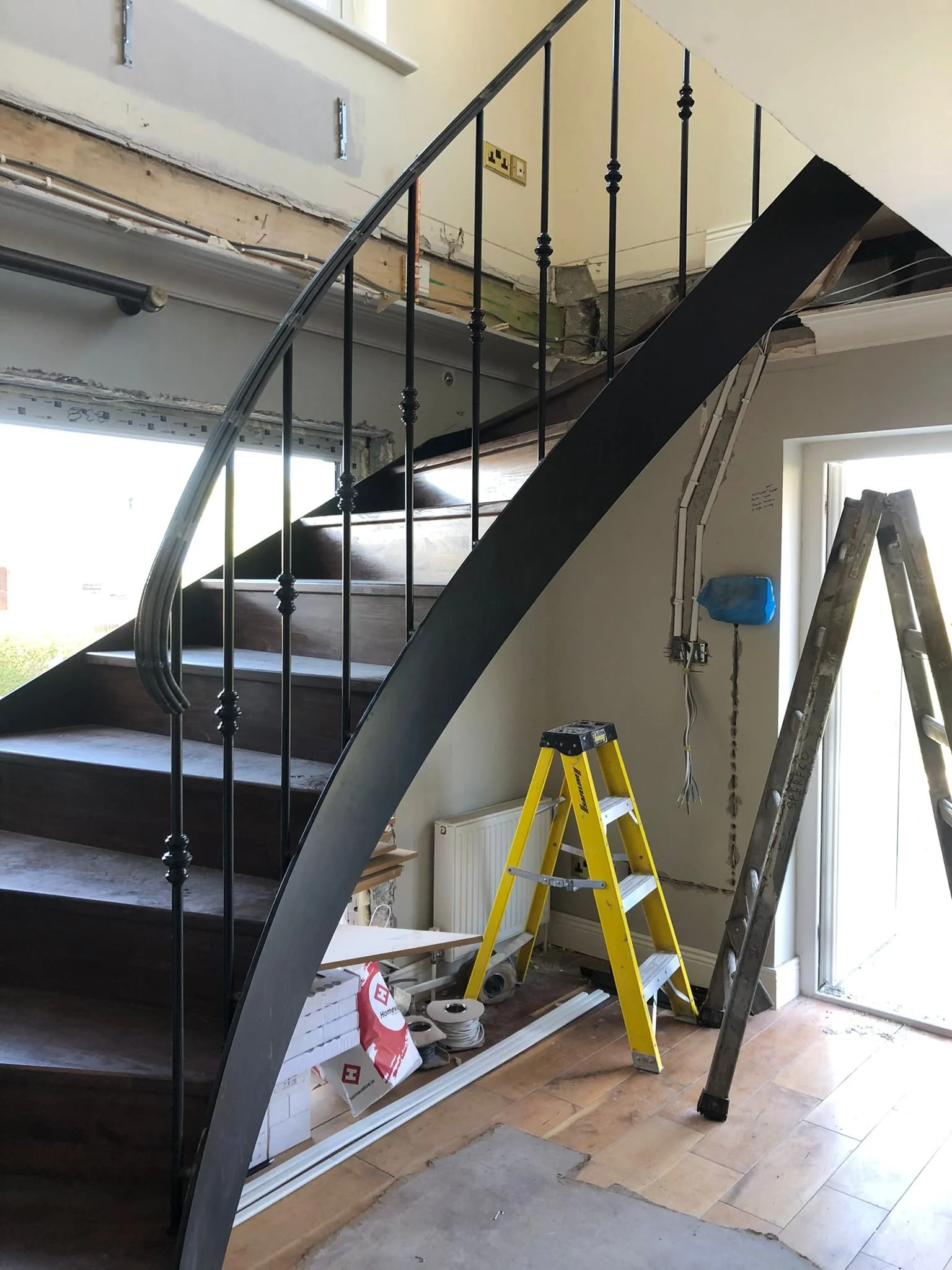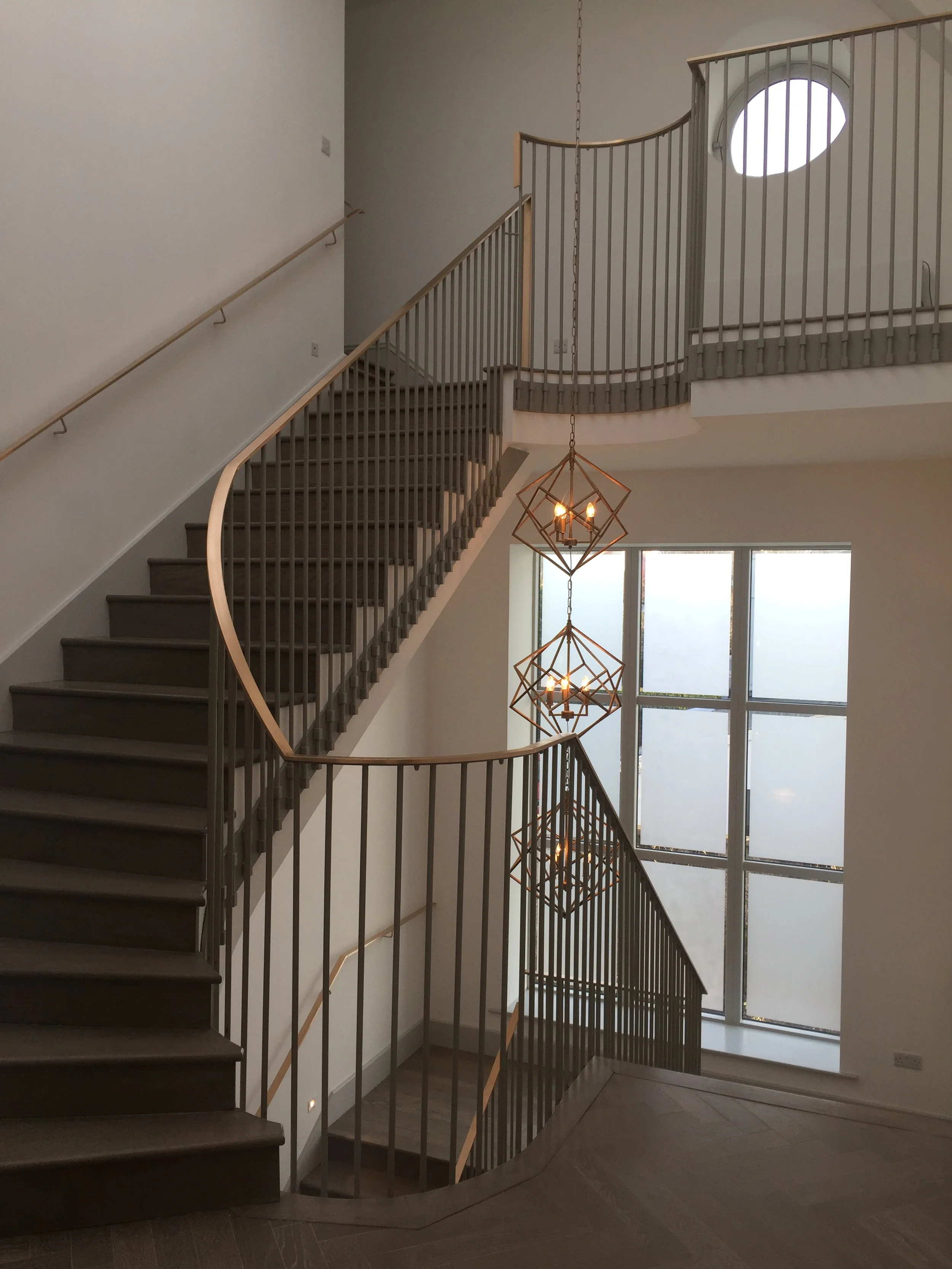 Curved Stairs - Thormanby Closed riser, Curved Stairs with Wrought Iron Balustrade and Handrail.